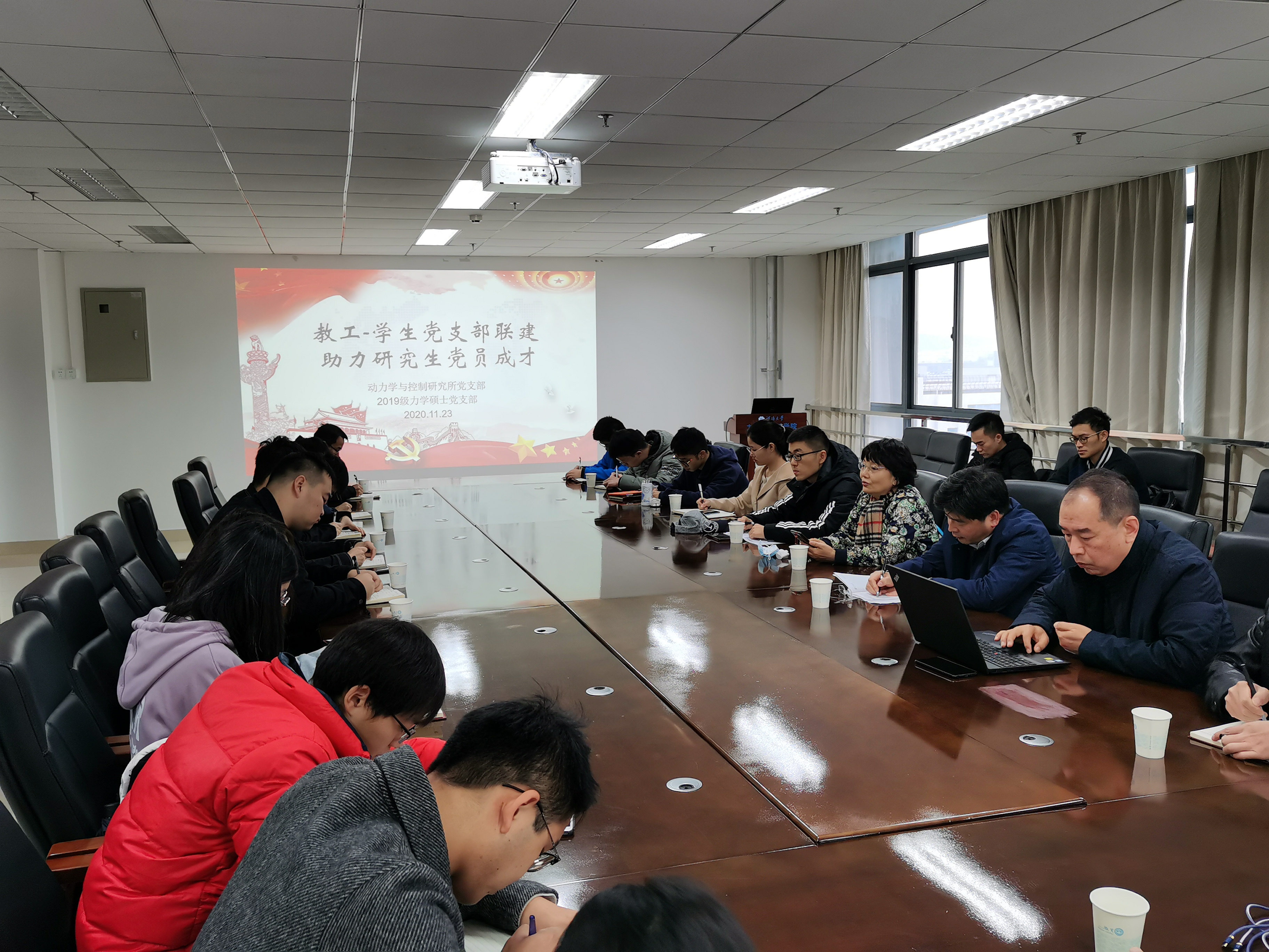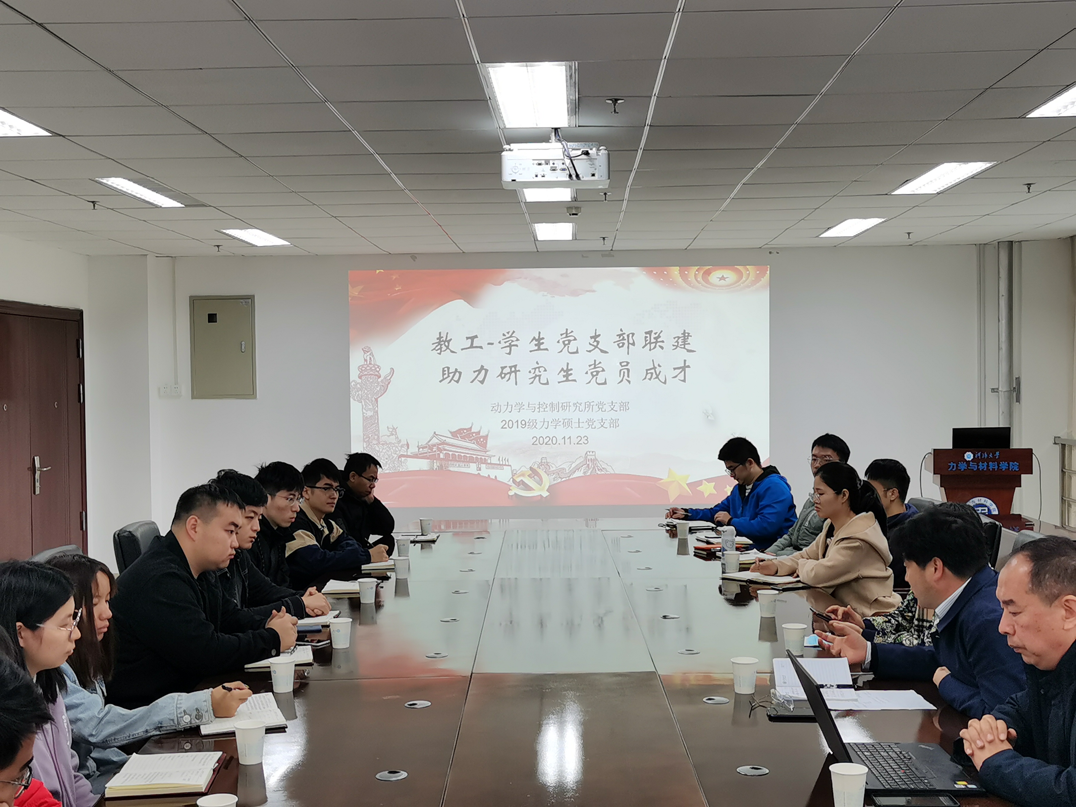2020年11月23日上午,力学与材料公司召开了“教工-员工党支部联建,助力研究生党员成才”主题座谈会。公司党委杨春伟书记、动力学与控制研究所党支部书记曹茂森教授、全国优秀教师杨海霞教授、部分教职工和博士生代表,以及2019级力学硕士党支部全体党员出席了会议。