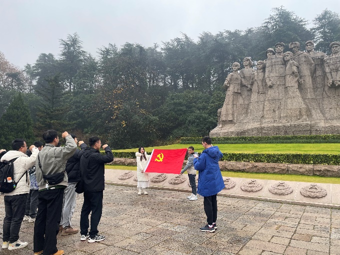 从风景区本门进入,首先映入眼帘的是肃穆庄严、昂首屹立的烈士就义群雕。党支部书记徐焱明向大家介绍了雨花台烈士纪念碑、烈士群雕、忠魂亭,丁香园的历史等方面,向全体同学们娓娓讲述“信仰至上、对党忠诚、舍生为民、勇于担当”的雨花先烈精神,同学们纷纷表达了对烈士们的敬仰与钦佩。