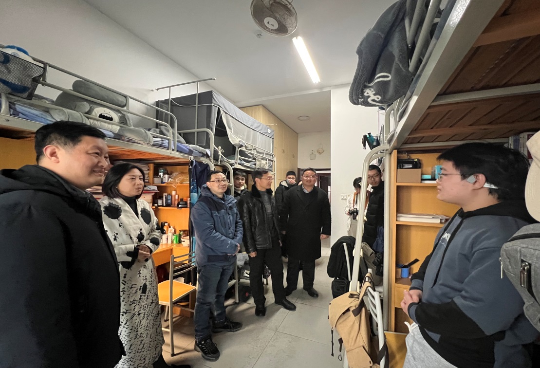 在江宁校区17舍,公司党委书记任海莹亲切询问同学们寒假学习生活情况及新学期的感想,悉心叮嘱同学们注意宿舍卫生、用电安全问题,养成良好的生活习惯,勉励同学们及时调整状态,做好新学期学习规划,以积极的心态和良好的精神面貌迎接新学期的校园生活。