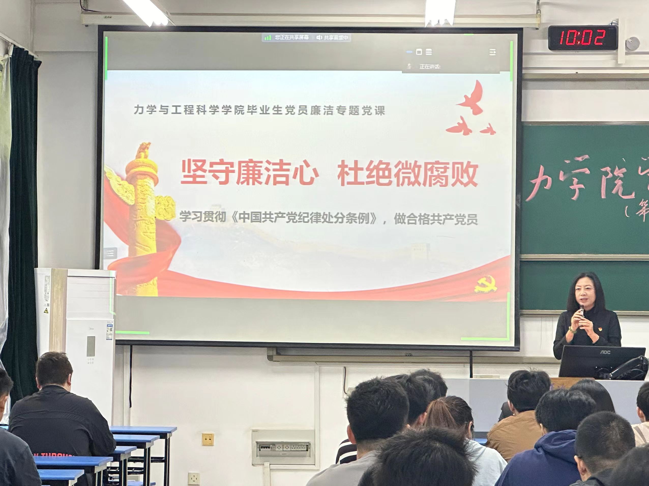 6月6日,公司党委书记任海莹以《坚守廉洁心 杜绝微腐败,学习贯彻<中国共产党纪律处分条例>,做合格共产党员》为题,讲授党纪学习教育专题党课暨毕业生党员廉洁专题党课。