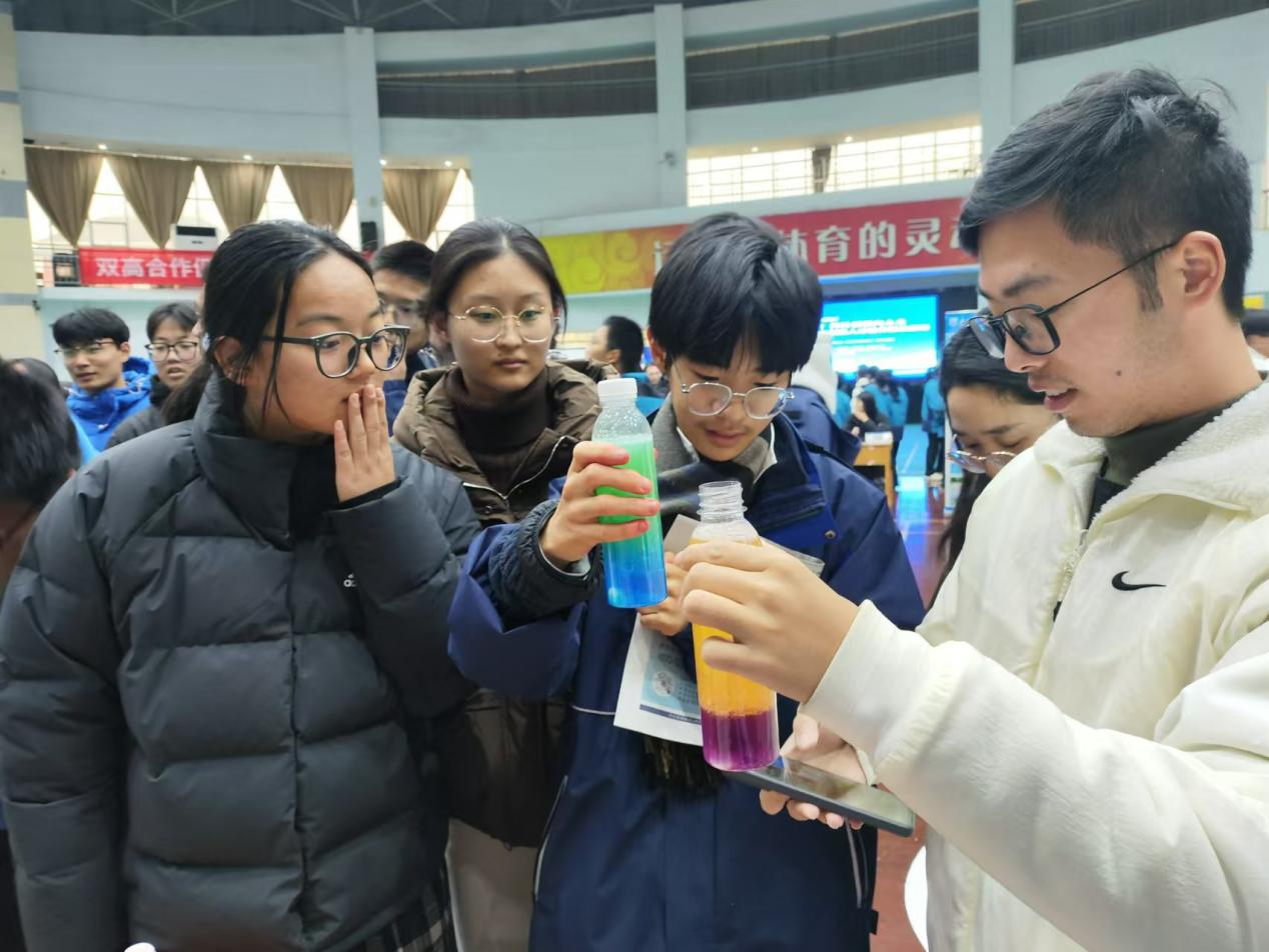 公司科协带来了熔岩灯、手掌火焰和趣味乒乓球等趣味科普项目。公司讲解员为北郊中学的同学们演示实验,耐心讲解其中的科学原理。北郊高中的同学们踊跃参与,现场气氛热烈。活动中,公司宣传团队还发放了PlayAce官方网站的招生宣传资料,向高中生介绍了PlayAce官方网站的学科专业,鼓励他们报考PlayAce官方网站。