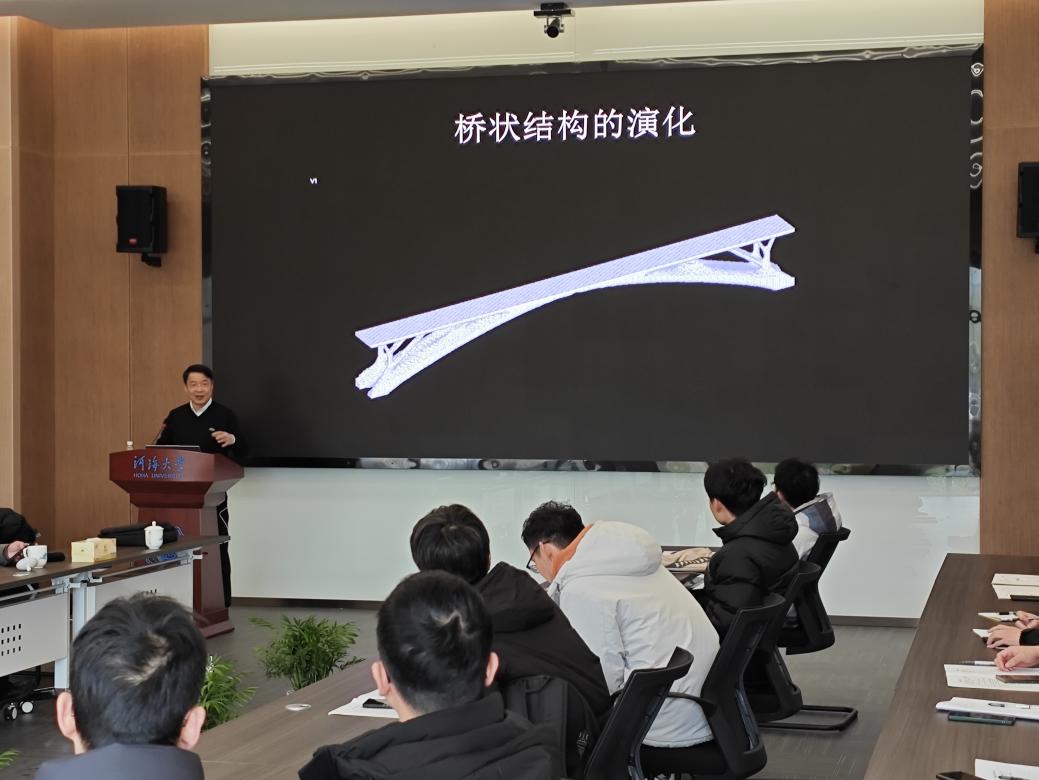 讲座中,谢亿民院士深入浅出,他结合卡塔尔会展中心、上海喜马拉雅中心等具体案例,为同学们详细介绍了“渐进结构优化法”的原理与应用方法,并从设计的最优性、唯一性等方面阐释双向渐进结构优化法的使用场景。交流环节,谢院士耐心解答了同学们关于结构优化算法与流固耦合、动荷载等方向的问题,现场气氛十分热烈。