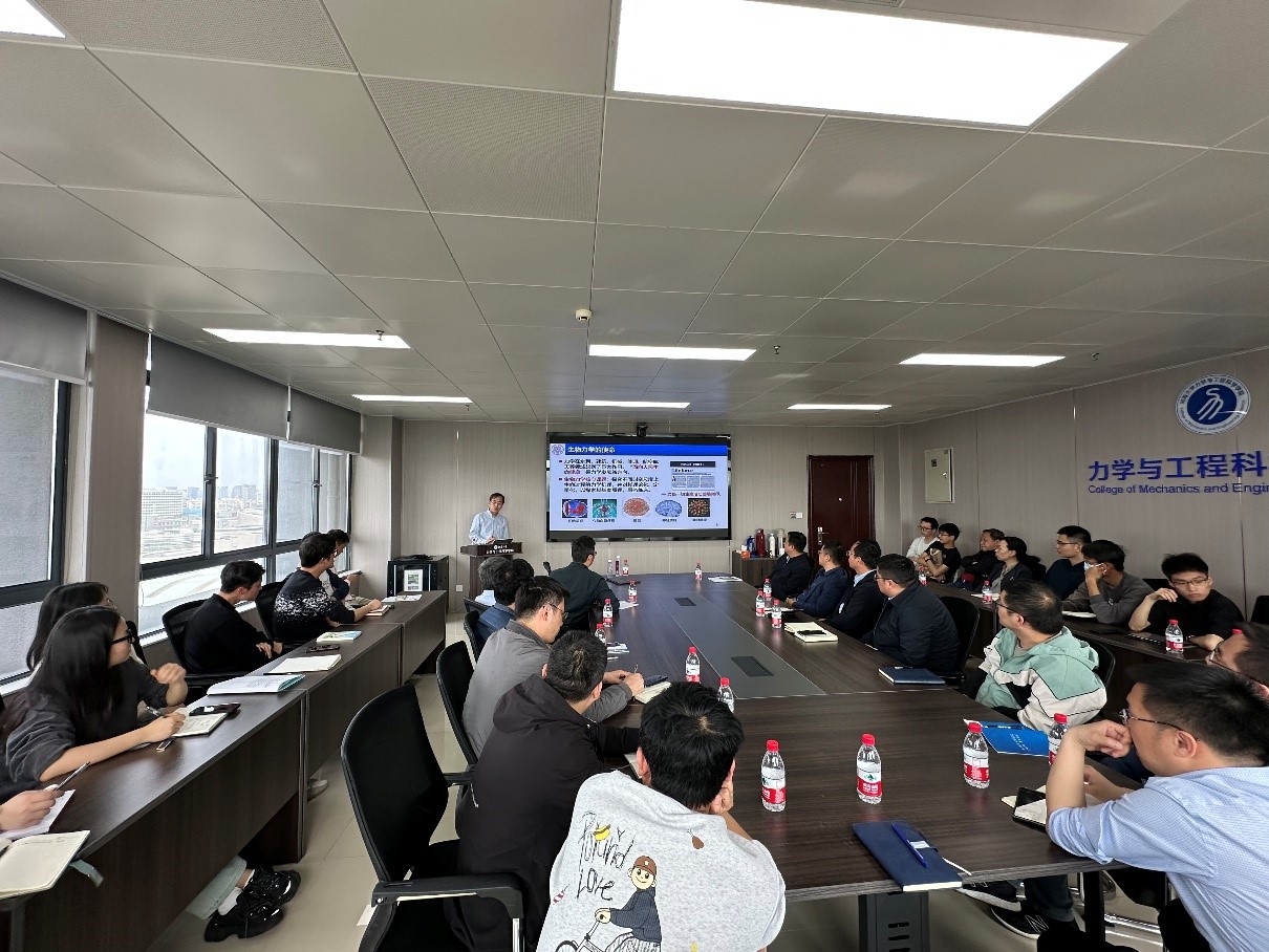 报告中,冯西桥教授指出,重大疾病的发生发展是生物学、化学与力学因素动态耦合的复杂过程。传统医学研究多关注生化机制,而生物力学的核心使命在于揭示力学微环境在病理演化中的关键作用,通过构建跨学科理论模型,为疾病的溯源、预测及诊疗提供新思路。冯教授系统介绍了团队提出的“力-化-生耦合生长发育理论”与“力-化-生耦合生物稳定性理论”,揭示了生物组织的生长、演化、病变规律。接着,冯教授介绍了多尺度生物力学理论、计算方法和实验。团队通过跨尺度建模技术,将分子、细胞与组织层次的力学行为相衔接,结合实验与计算仿真,定量揭示了力学因素在肿瘤、淋巴、神经系统等生理和病理过程中的作用。此外,他还分享了细胞群体动力学领域的最新成果。