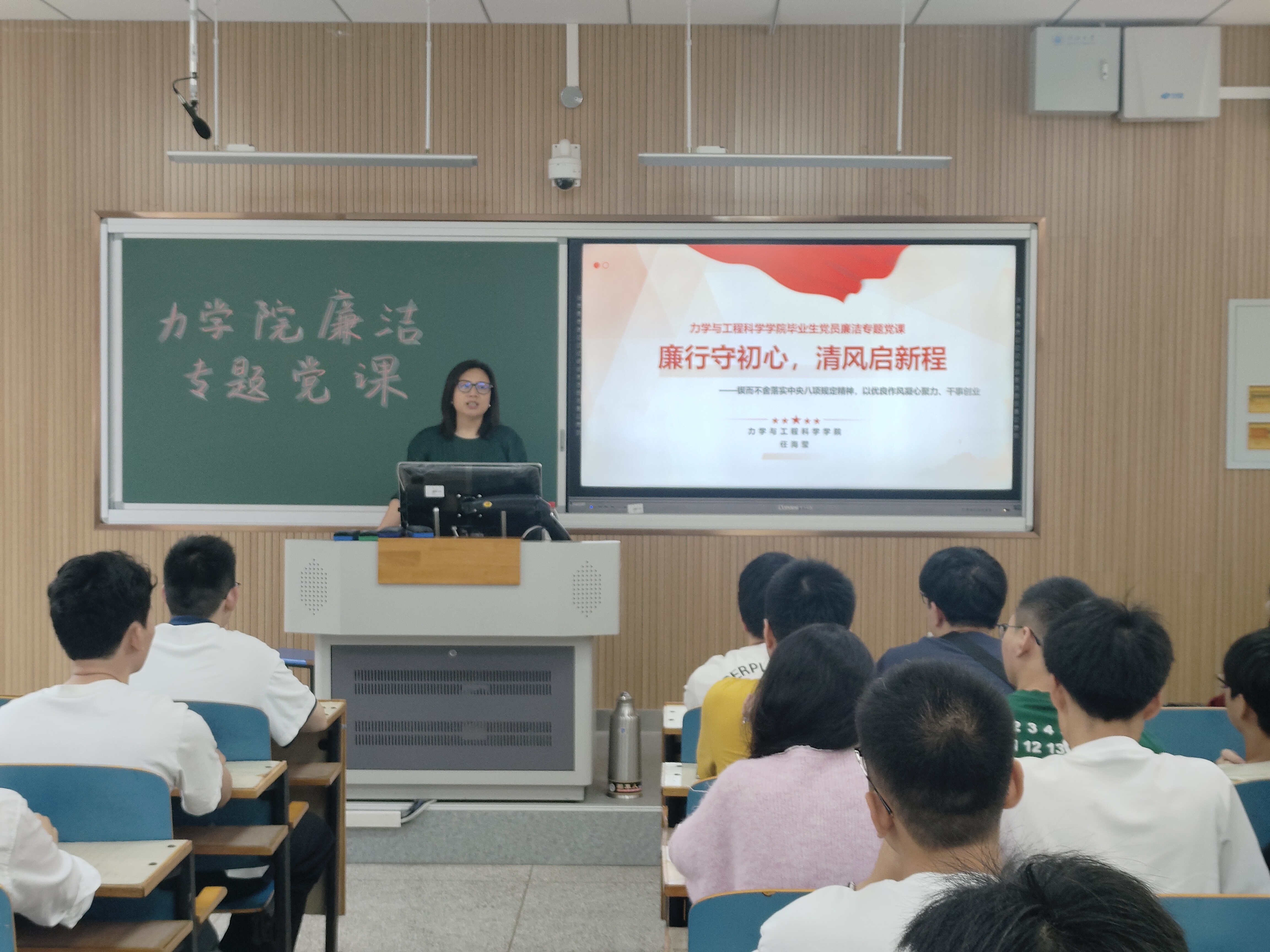 6月13日,公司党委书记任海莹以《廉行守初心,清风启新程》为题,为2025届毕业生党员讲授廉洁专题党课。公司党委副书记、副经理武晓楠,团委书记陈爽、工程力学专业本科生党支部书记周蓓及全体毕业班党员参加。