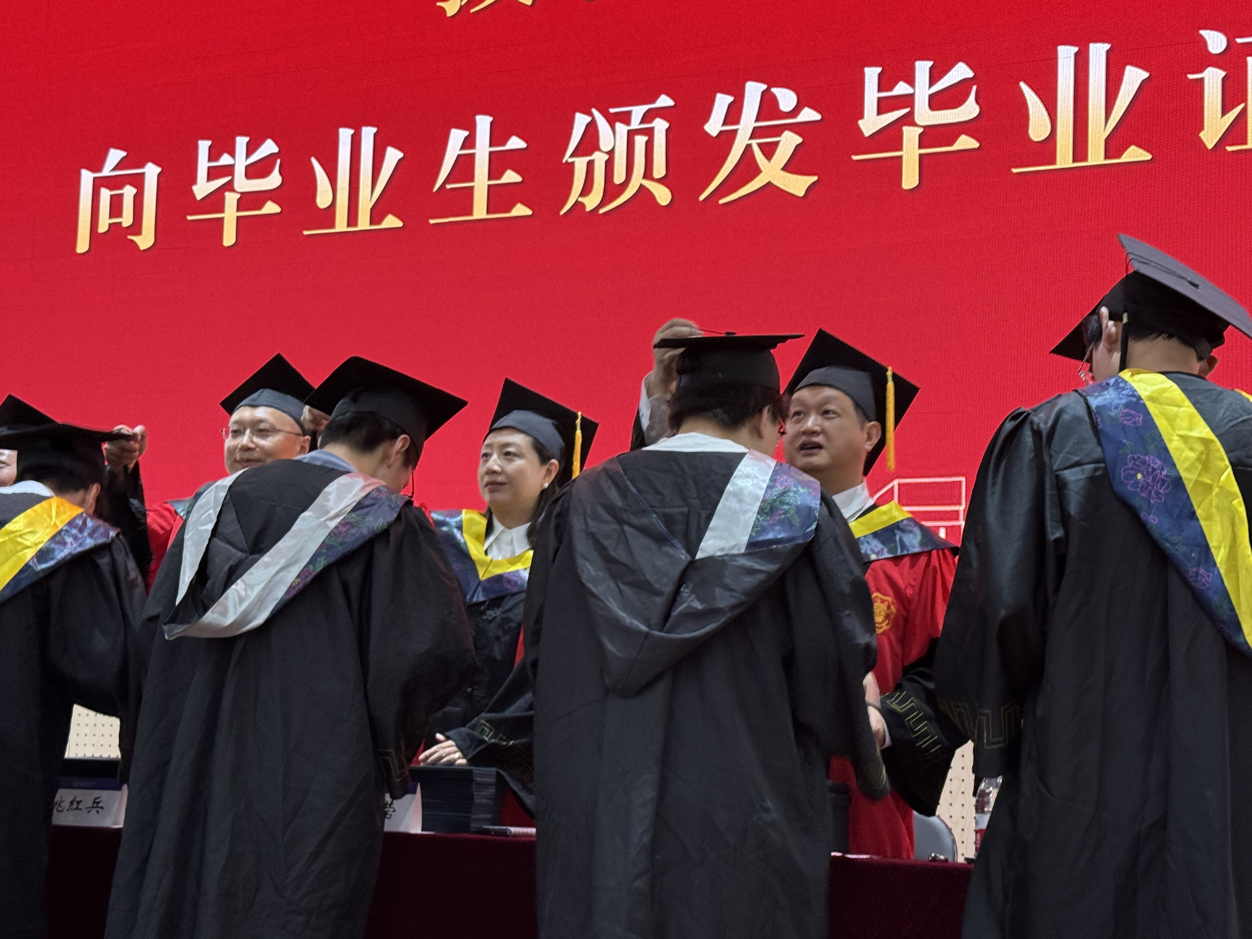 毕业典礼在庄严的国歌声中正式开始。雷冬经理向圆满完成学业的2025届毕业生们表示最热烈的祝贺,向辛勤培养员工成长的老师和家长致以崇高的敬意。他指出,公司近年来取得一个又一个的发展成果离不开全体师生的共同努力。同学们的青春活力与奋斗精神,为校园注入了源源不断的生机,在公司发展历程中留下了浓墨重彩的一笔。他还与同学们分享了三点期望:一是胸怀国之大者,勇担时代使命。要传承母校红色基因,将个人理想融入国家发展大局,在服务社会、奉献国家的实践中找准人生坐标,以专业所学为强国建设、民族复兴伟业贡献力量。二是坚持砥砺奋进,永葆进取精神。要始终保持迎难而上的勇气与百折不挠的毅力,在实践中积累经验、在挫折中锤炼品格,永葆蓬勃朝气与创新锐气,书写无愧于时代的青春答卷。三是传承校训精神,践行使命担当。要传承母校精神特质,树立远大理想抱负,在各自领域发光发热,为母校发展与国家建设作出新的更大贡献。
