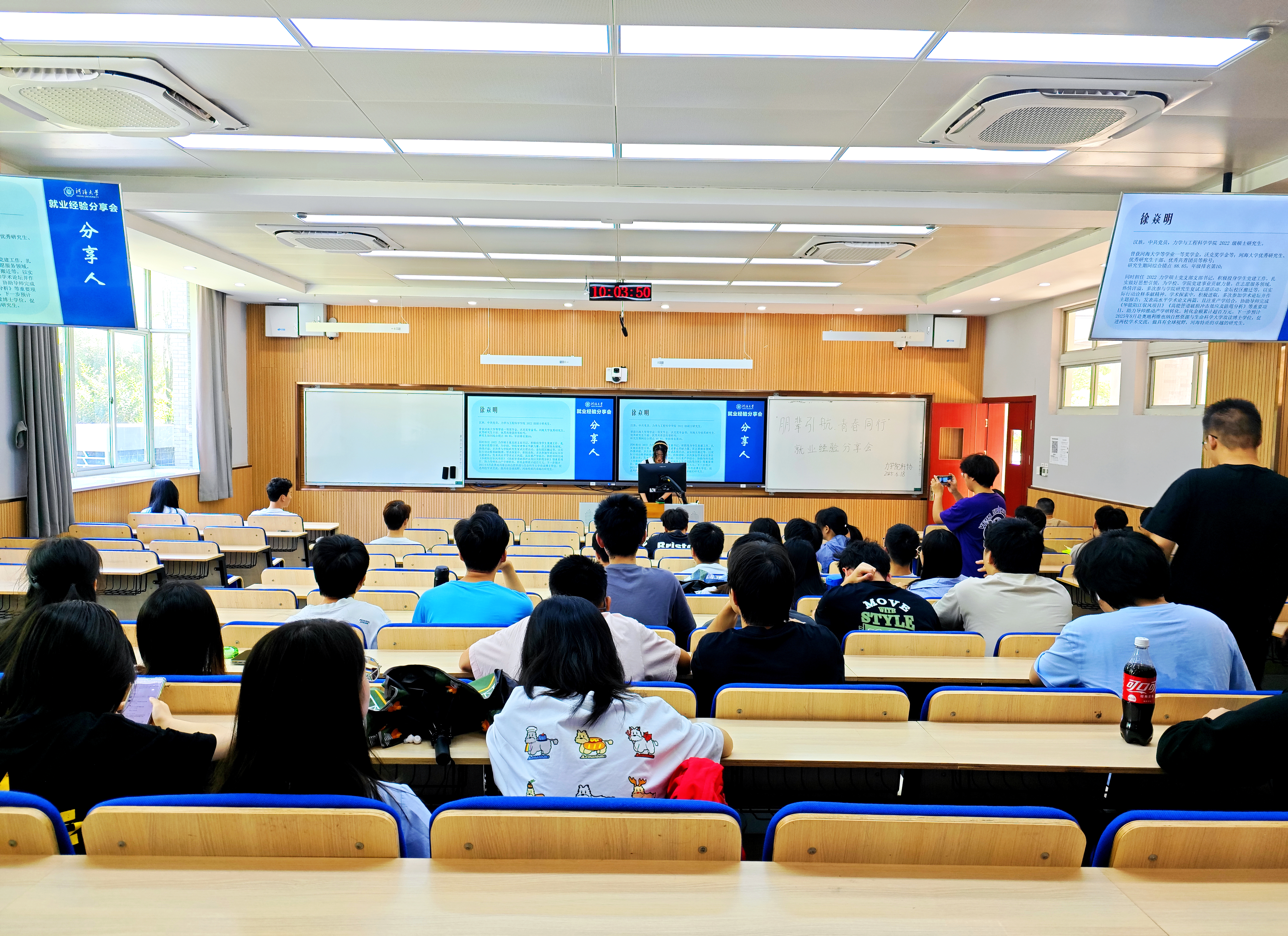 范思圆同学结合自身新能源行业的求职经历,向大家介绍了力学专业不同的就业方向,分享了从校园到职场的转换心得,并向员工工作经历比较丰富的同学提出了求职建议。