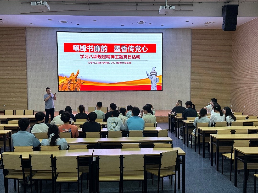 本次党日活动将深入贯彻中央八项规定精神与优秀传统文化紧密结合,让党员深入学习领会中央八项规定精神内涵,进一步增强党性修养,弘扬廉洁自律、求真务实的工作作风,营造风清气正的氛围。下一步,2023级硕士研究生党支部将持续开展形式多样的深入贯彻中央八项规定精神学习教育活动,让党员在学习实践中不断锤炼党性,始终坚守廉洁底线,发挥党员先锋模范作用,书写更加精彩的青春篇章。