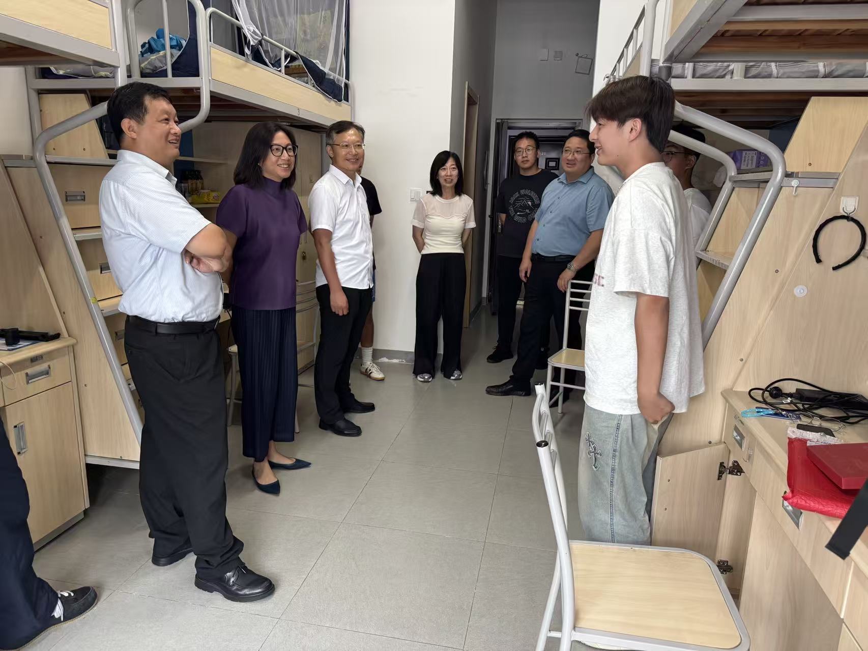 迎新当天,公司领导班子前往宿舍走访慰问新生,与新生亲切交流,详细了解新生到校后的生活起居、饮食适应等情况,把暖心关怀送到新生身边。